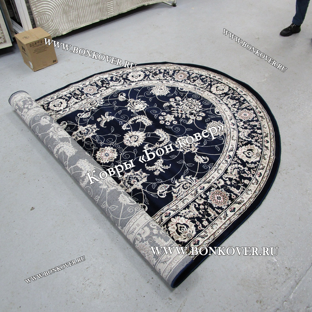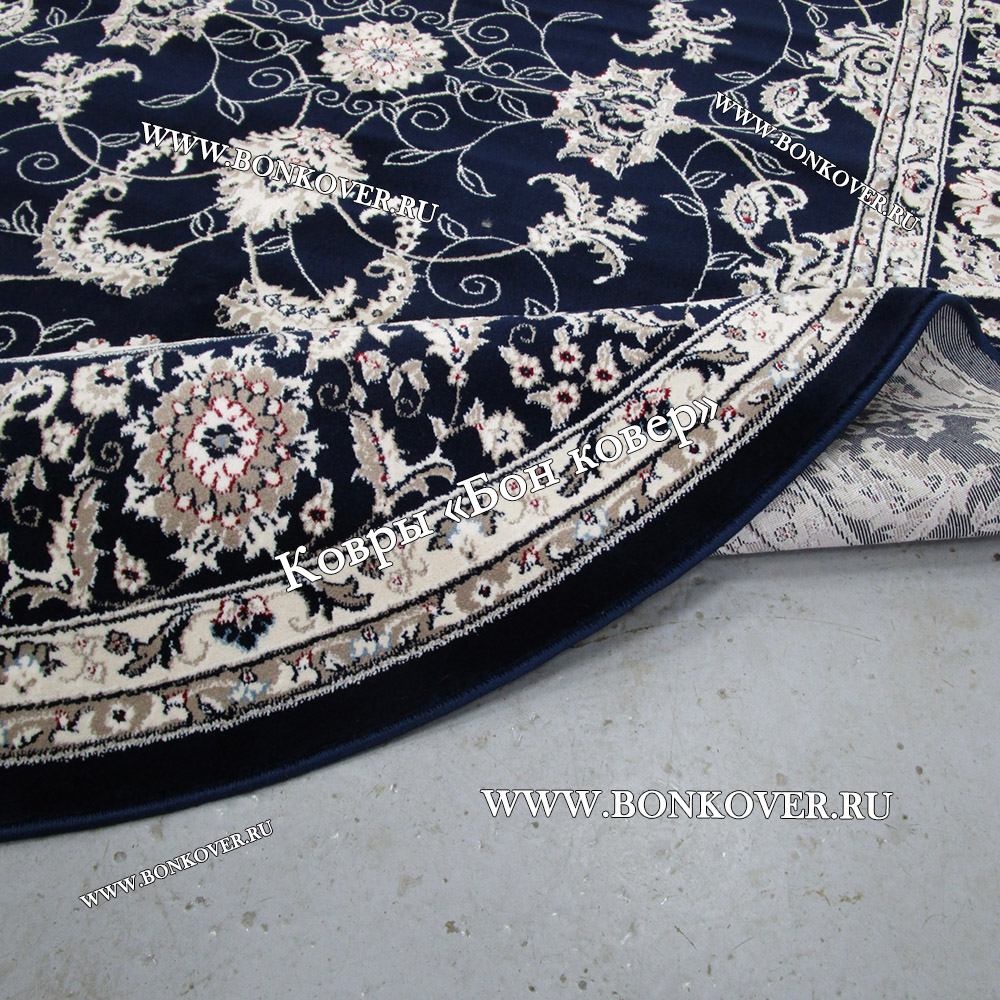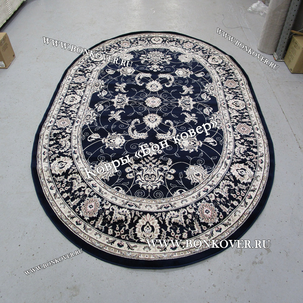 Изящный Овальный Ковер Для Гостиной Дизайн 30596 Темно-Синий наполняет интерьер квартиры теплом и уютом, гармонично сочетает в себе изящество и стиль. Он соткан из высококачественного сырья, прочный и долговечный.