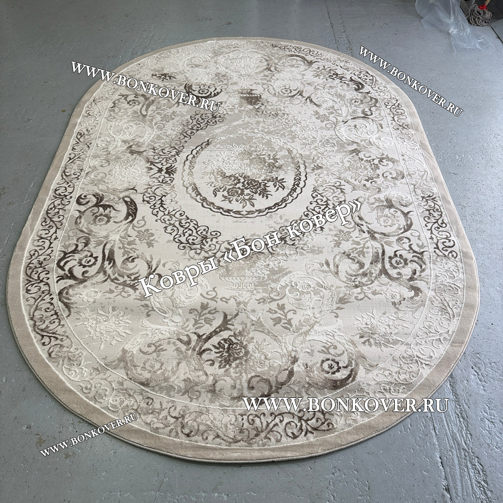 Шикарный Турецкий Ковер Для Гостиной Дизайн 01 Бежево-Коричневый Овал наполняет интерьер вашего дома теплом и уютом, гармонично сочетает в себе изящество и красоту. Он соткан из современных материалов, комфортный и долговечный.
